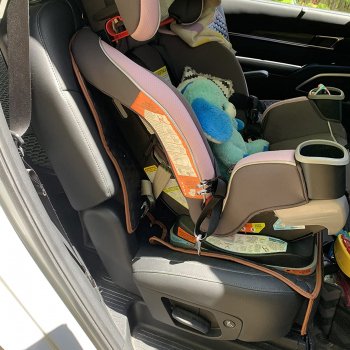 Loving my car organizer!! It's perfect for keeping all my daughter's stuff in one place and also for protecting the back of the seat. Lovely color that matches perfectly with our car interior. Thank you so much!